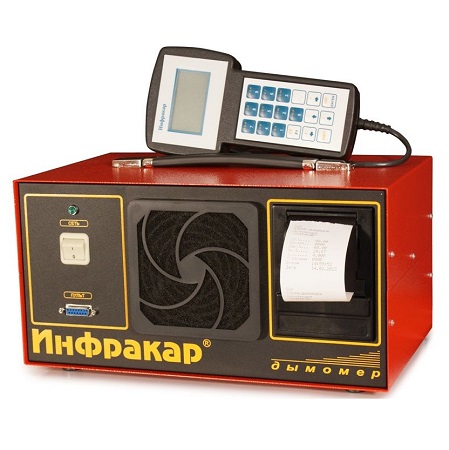 Переносной дымомер «ИНФРАКАР-Д 1.02  предназначен для измерения дымности отработавших газов дизельных автомобильных двигателей. Оптическая база 0,43 м. + RS-232 + Выносной пульт ДУ + Принтер. Внесен в Госреестре средств измерений РФ, Республики Беларусь, Казахстан и Молдова.