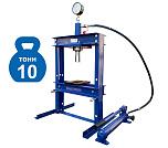 Настольный. Занимает мало места. Основные функции выполняет. Для гаража. Гидравлический, ручной, сборно-разборный. Гидроцилиндр с пуансоном имеет возможность перемещения по всей ширине рамы. Для запрессовки деталей механизмов. Усилие 10 тонн. Интервал пуансона 135 мм. Рабочее окно: 400 x 350 мм.