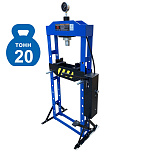 Усилие 20 тонн. Пневмогидравлический привод — рекомендуется для увеличения скорости работы неответственных деталей (втулки), где есть поток по выпрессовки, ручной привод — для точного дозирования усилия ответственных деталей (подшипники). Манометр, гидроцилиндр с пуансоном перемещается по всей ширине рамы. Управление ручное/пневматическое. Ход поршня 0-145 мм. Рабочее окно 500х1110 мм. Доставка по РФ и ТС