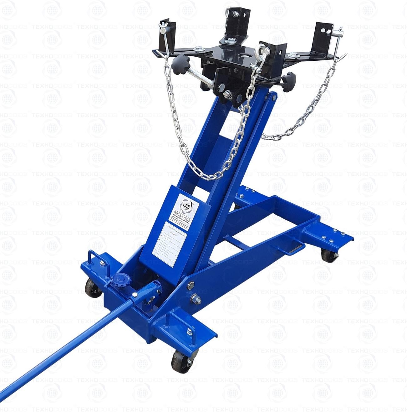 Домкрат трансмиссионный для снятия/установки ОСОБО ТЯЖЕЛЫХ АГРЕГАТОВ (КПП, мостов и т.п.) г/п 1 т. Подъем 230-760 мм. Устойчивый и маневренный – два колеса поворотные. Оборудован страховочной цепью, для фиксации агрегата. Приемная площадка регулируется с фиксацией в трех плоскостях: продольно, по наклону, по оси вращения.