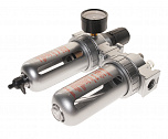Для подключения одного или нескольких пневмоинструментов – 2000 л/мин. Снижает давление между компрессором и пневмоинструментом. Регулятор давления воздуха с лубрикатором, влагоотделителем и манометром вход/выход - ½”. Давление компрессора 8÷10Бар.