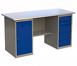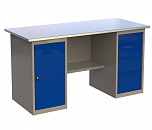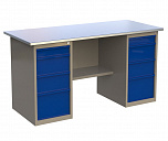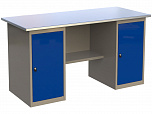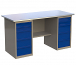 Двухтумбовый. Допустимая нагрузка на столешницу 1000 кг. Опорные элементы выполнены сварными из холоднокатаной стали. Для выполнения сборочных, ремонтных, слесарных, монтажных и других видов работ на производстве, в сервисных центрах, мастерских, гаражах, а также для обучения технологии в учебных заведениях. Комплектуется полкой-стенкой, расположенной под столешницей для удобного размещения габаритного инструмента и оснастки. Размеры верстака: 855x1596x696 мм. Вес: 82 кг. Поставляется в 4 комплектациях на выбор.