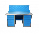 Двухтумбовый. Допустимая нагрузка на столешницу 1000 кг. Опорные элементы выполнены сварными из холоднокатаной стали. Для выполнения сборочных, ремонтных, слесарных, монтажных и других видов работ на производстве, в сервисных центрах, мастерских, гаражах, а также для обучения технологии в учебных заведениях. Комплектуется полкой-стенкой, расположенной под столешницей для удобного размещения габаритного инструмента и оснастки. Размеры верстака: 855x1596x696 мм. Вес: 128 кг. Поставляется в 4 комплектациях на выбор.