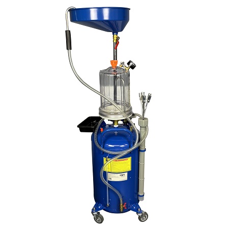 Для слива/откачки масла через щупы или самотёком. Регулировка высоты чаши 970-1570мм. Комплектация: щупы - 5 гибких разного диаметра, манометр (давление/вакуум), лоток, прозрачная трубка для контроля «отработки» в баке. Подключение к пневмолинии - быстросъём. Ёмкость 90л. = Бак 80л + сливная воронка 10л.
