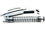 Контроль расхода и остатка смазки благодаря прозрачному корпусу. Емкость 0,9л (900 см³). Оснащен резиновой ручкой противоскольжения. Предусмотрен нажимной клапан для сброса давления. В комплекте: для удобной подачи смазки применяются трубки, наконечники и шланги. Для применение в стационарных и полевых условиях. Рабочее давление: 306 Атм. Давление на разрыв: 816 Атм. Вес: 1,29 кг. ТОЛЬКО ДЛЯ ПЛАСТИЧНЫХ (ГУСТЫХ) СМАЗОК!!!