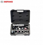 RT-1207K Угловая зачистная машинка пневматическая c набором головок с цанговым зажимом 6 мм. Скорость вращения 20 000 об/мин. Для зачистки резины перед вулканизацией, удаления заусенцев, гравировка и маркировка мелких деталей. Вес -0,58 кг.