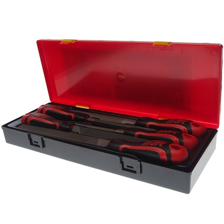Набор напильников 5 предметов в прочном презентабельном боксе. В комплекте: напильник плоский 200 мм, полукруглый 200 мм, треугольный 200 мм, круглый 200 мм и квадратный 200 мм.