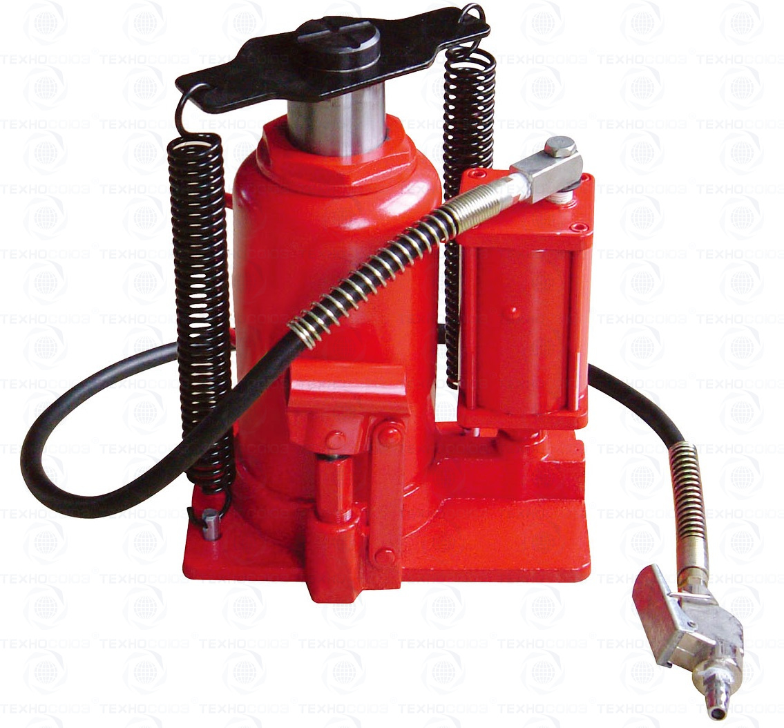 Пневмогидравлический привод подъема домкрата, позволяет быстро и без усилий вывесить автомобиль.